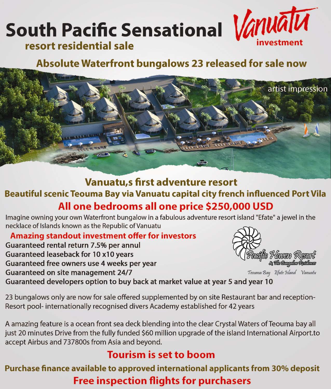 Vanuatu Real Estate Investment for Sale on Efate Island – 7.5% Return